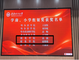 11月14至16日,黑龙江省高校师范类专业学生教师技能大赛在齐齐哈尔大学圆满落幕。教育学院2023级学前教育二班高源、赵微微获学前、小学组银奖,教育学院2023级学前教育二班于欣玲、2023级小学教育二班韩佳霖获学前、小学组铜奖,于广欣老师和任萍老师获评优秀指导教师奖,2023级学前教育一班谢佳蕊、徐源也积极参与本次大赛,充分展现了师范学子的专业素养与参赛热情。